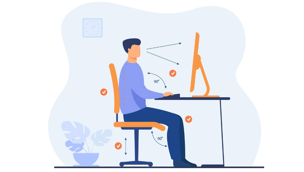 Een ergonomische werkplek begint bij de juiste stoel en het juiste bureau. De werkgever zorgt voor kantoormeubels die verstelbaar zijn; jij stelt ze goed in.