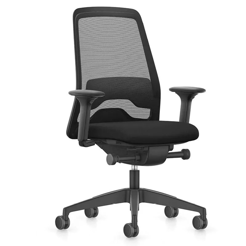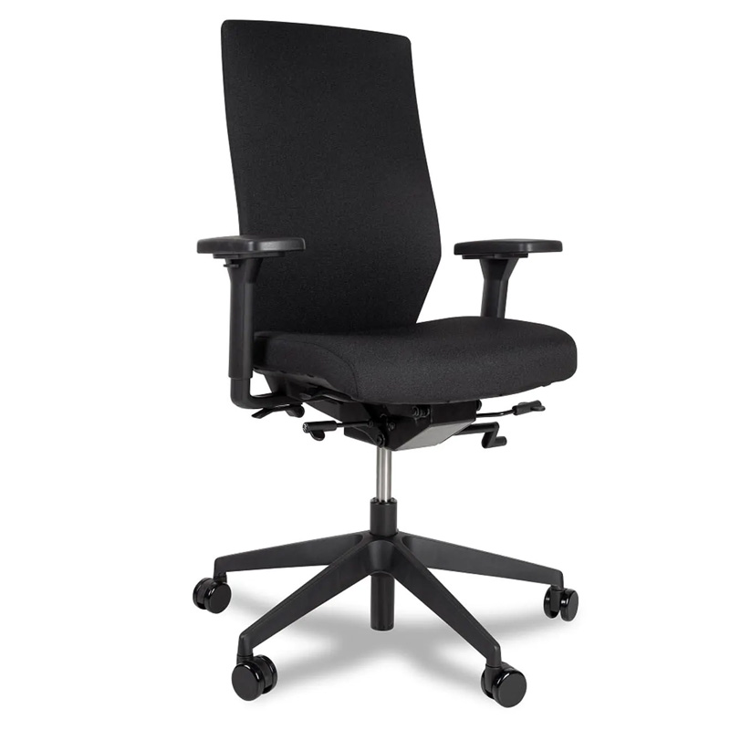 Bureaustoel met veel instelmogelijkheden en geschikt voor langere en kleinere gebruikers.