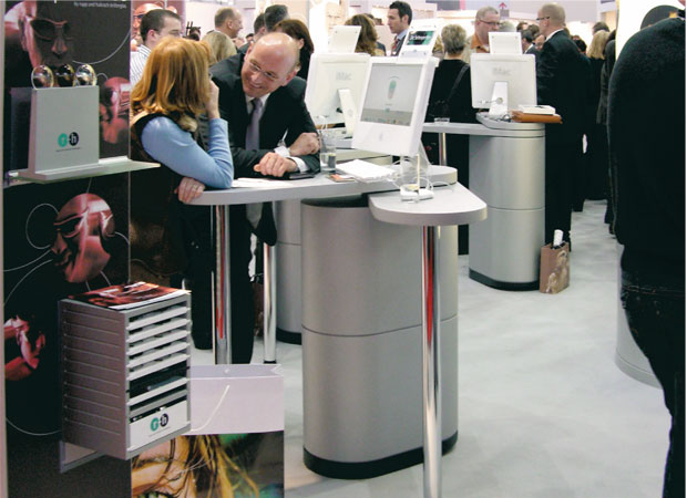De mobiele balie past zich optimaal aan in elke omgevingen en is een echte eyecatcher. Dankzij het intelligente ontwerp is de info-balie zo multifunctioneel als een Zwitsers zakmes.